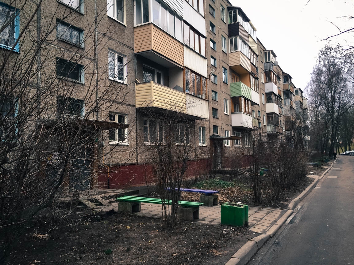 A typical Soviet-era house that was built from pre-manufactured panels. My grandfather, who was an officer in the Soviet army, received a 4-bedroom apartment in Pinsk and later exchanged it for a small place in this building.